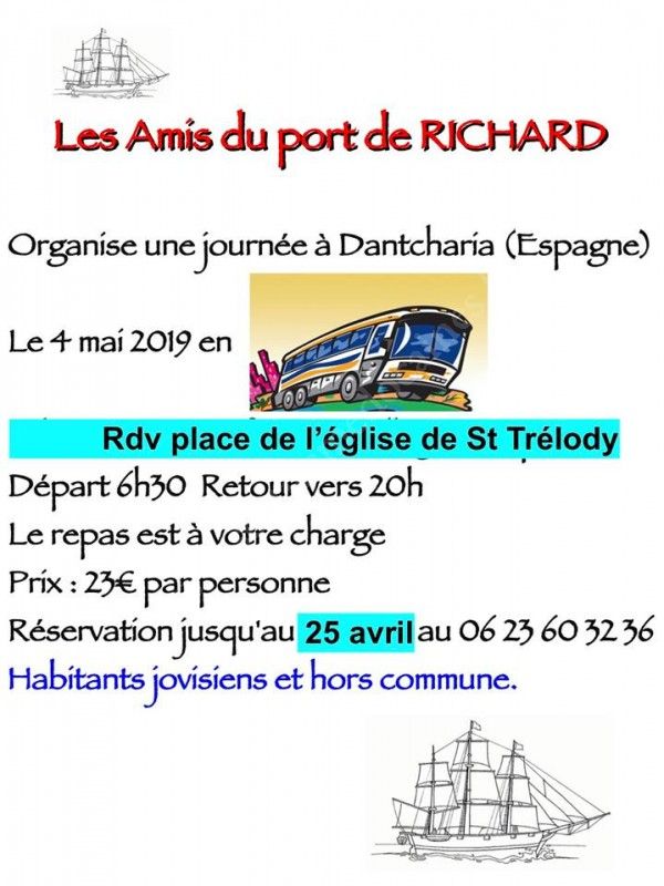 Les Amis du Port de Richard organisent une sortie en bus pour les personnes désirant se rendre à Dancharia (Espagne) pour une journée le 4 Mai 2019.