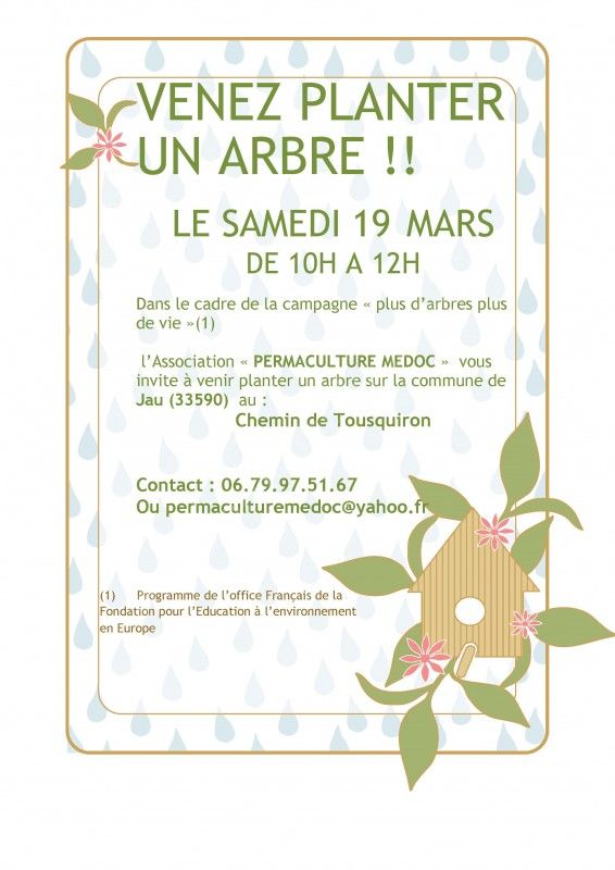 l’Association « PERMACULTURE MEDOC » vous invite à venir planter un arbre sur la commune de Jau.