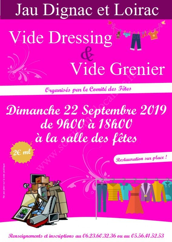 Le Comité des Fêtes organise son Vide-Dressing et son Vide-Grenier le 22 Septembre 2019 de 9h00 à 18h00 à la salle des fêtes de Jau Dignac et Loirac.