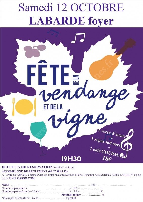 Venez nombreux au prochain évènement organisé par l'Association Fêtes et Animations Labardaises : Un repas de Vendanges pour la Fête de la Vendange et de la Vigne.