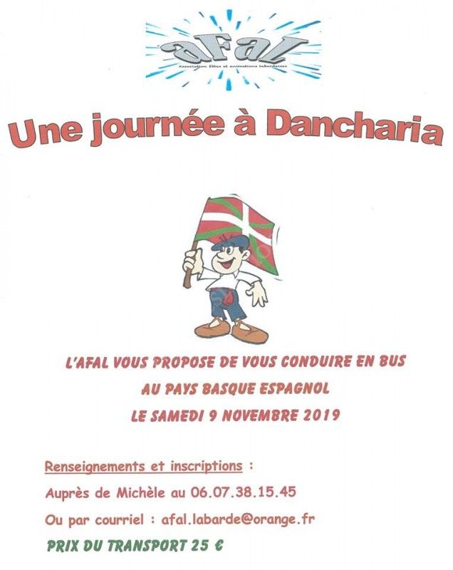 L'AFAL Vous propose de vous conduire en bus une journée au Pays Basque Espagnol le Samedi 9 novembre 2019.