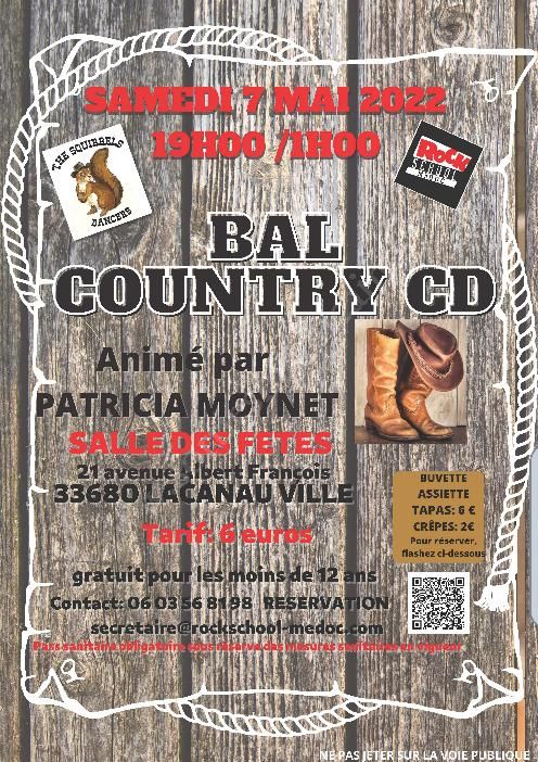 Fini d'attendre et faites chauffer le plancher de la salle des fêtes de LACANAU-VILLE lors de notre bal country CD animé par Patricia MOYNET!