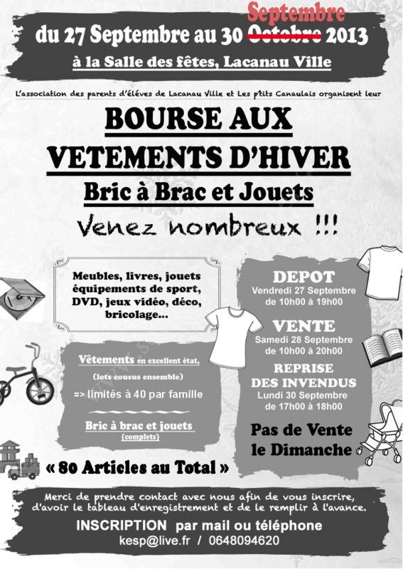- Reprise des invendus : Lundi 30 septembre de 17h00 à 18h00