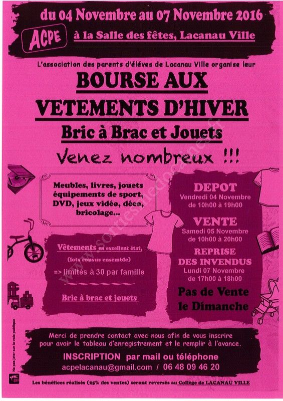 Bourse aux Vêtements d'Hiver, Bric à Brac & Jouets organisés par l'ACPE - Association Canaulaise des Parents d’Élèves.