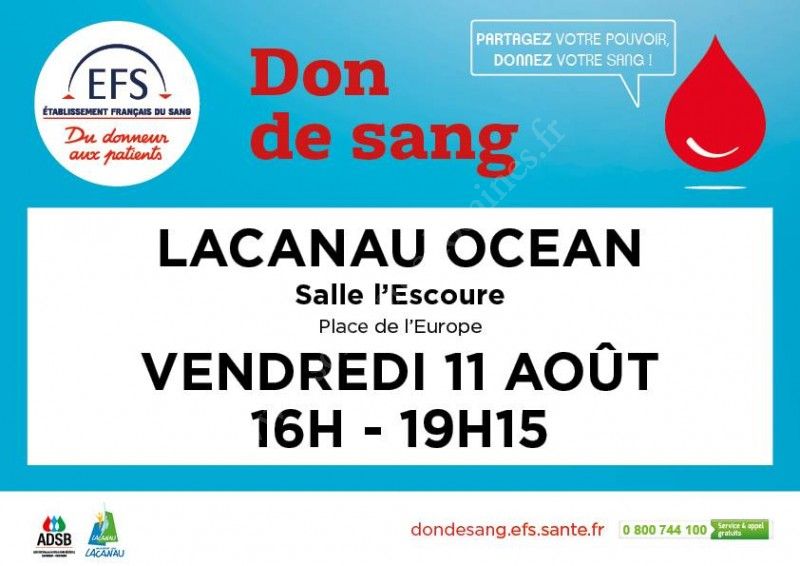 Venez donner votre sang à Lacanau le 11 août 2017, vous pourrez ainsi sauver des vies !!!