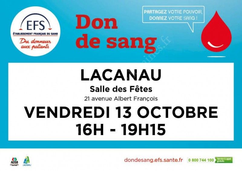 Venez donner votre sang à Lacanau le 13 octobre 2017, vous pourrez ainsi sauver des vies !!!