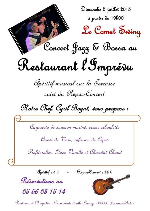 Le restaurant l'Imprévu vous propose une soirée "Repas-concert " avec le groupe "Le Comet Swing".