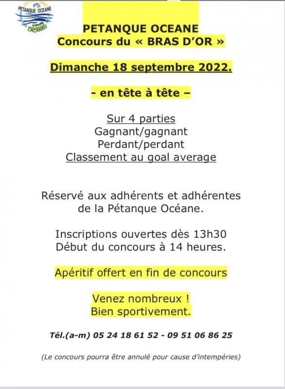 Réservé aux adhérents et adhérentes de La Pétanque Océane.