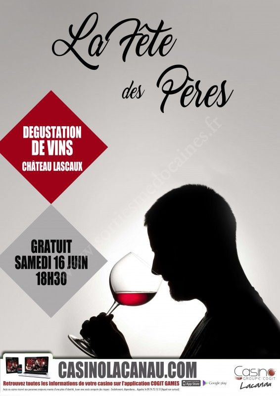 A l'occasion de la fête des pères, le Casino de Lacanau vous invite à une dégustation de vins des vignobles Lascaux à partir de 18h30.