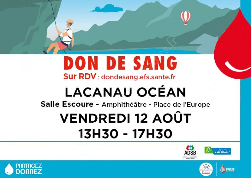 Don de sang le vendredi 12 août 2022 à Lacanau !
