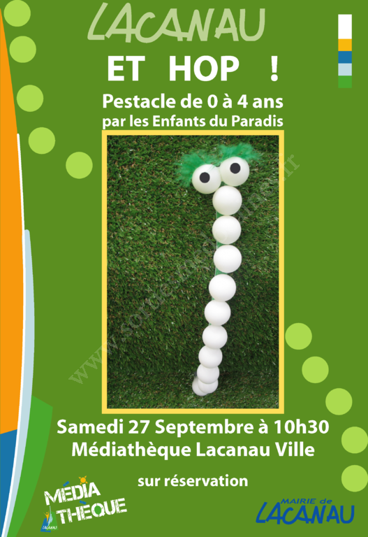 La compagnie Les enfants du paradis présente "ET HOP !", un "pestacle" pour les tout-petits jusqu'à 4 ans samedi 27 septembre à la médiathèque de la Ville, sur réservation.