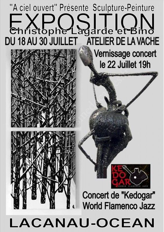 Bino et Christophe Lagarde s'exposent dans le jardin de l'Atelier de la Vache, du 18 au 30 juillet 2017, un des lieux les plus atypique de Lacanau Océan ...