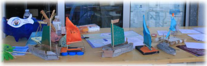 L'atelier "Coque Noix" permettre à tous les enfants à partir de 5ans de fabriquer un OFNI (Objet Flottant Non Identifié) ou le catamaran miniature du VGL.