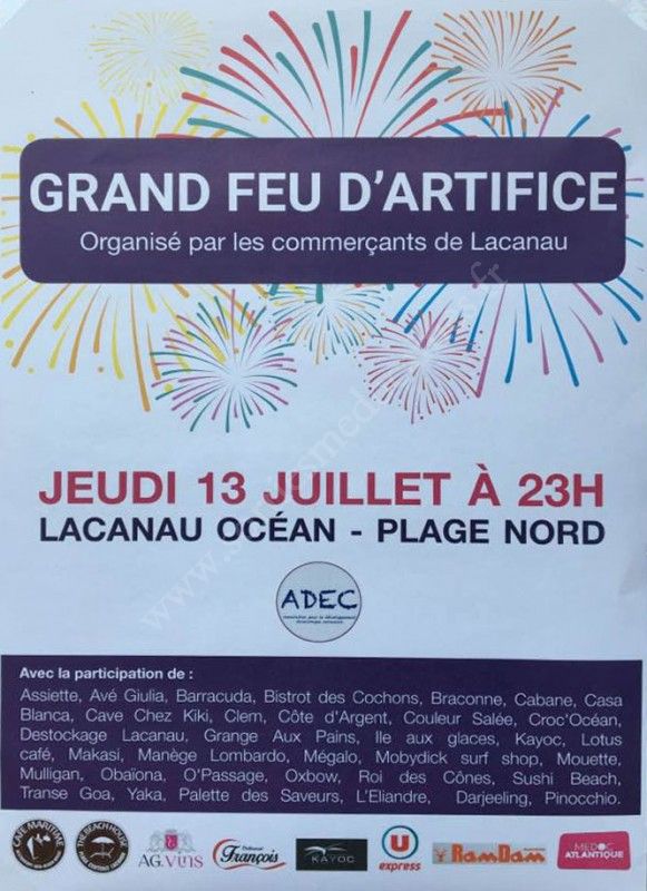 Grand feu d'artifice organisé par les commerçants de Lacanau.