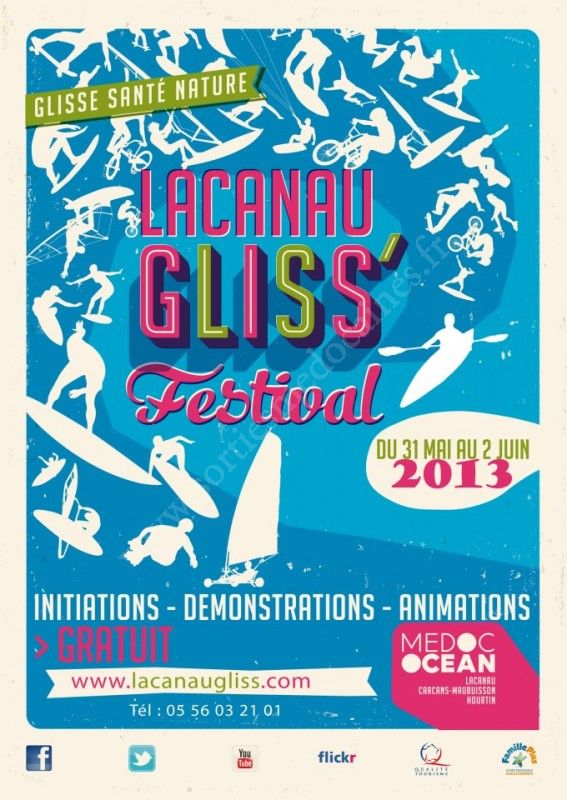 Du 31 Mai au 2 Juin, Lacanau accueille pour la 14ème édition, le Lacanau Gliss’Festival, organisé par l’Office de Tourisme Médoc Océan et l’association Lacanau Gliss’Festival.