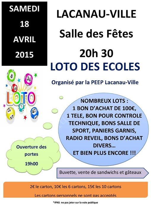 Loto des Écoles organisé par la PEEP Lacanau-Ville.