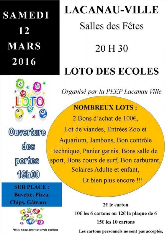 Loto des écoles organisé par PEEP Lacanau Ville.