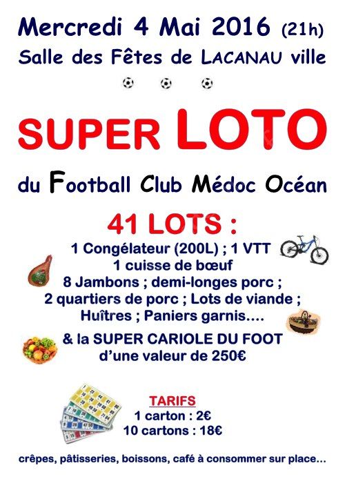 Le Football Club Médoc Océan organise un Super Loto avec 41 lots dont :