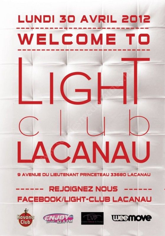 En avant première, LUNDI 30 AVRIL (veille du 01 Mai... jour férié...) venez sur la côte pour découvrir le LIGHT CLUB... LACANAU :