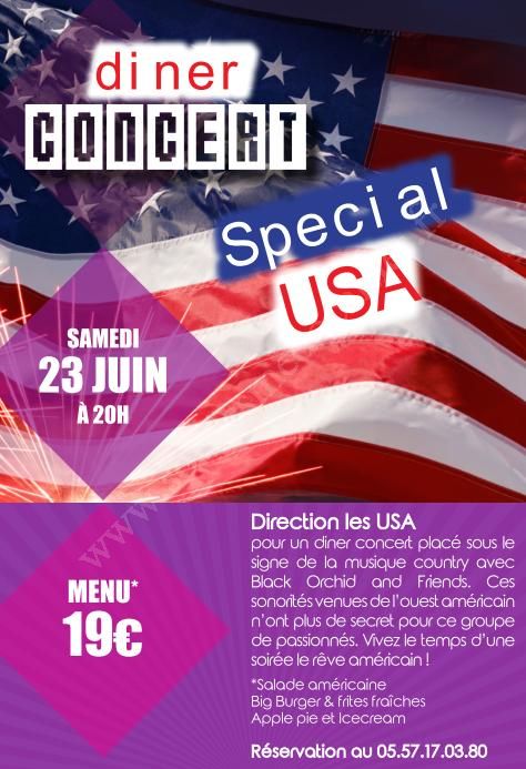 Direction les ÉTATS UNIS pour un dîner concert placé sous le signe de l'amérique avec le célèbre groupe "Black Orchid and Friends" (country)
