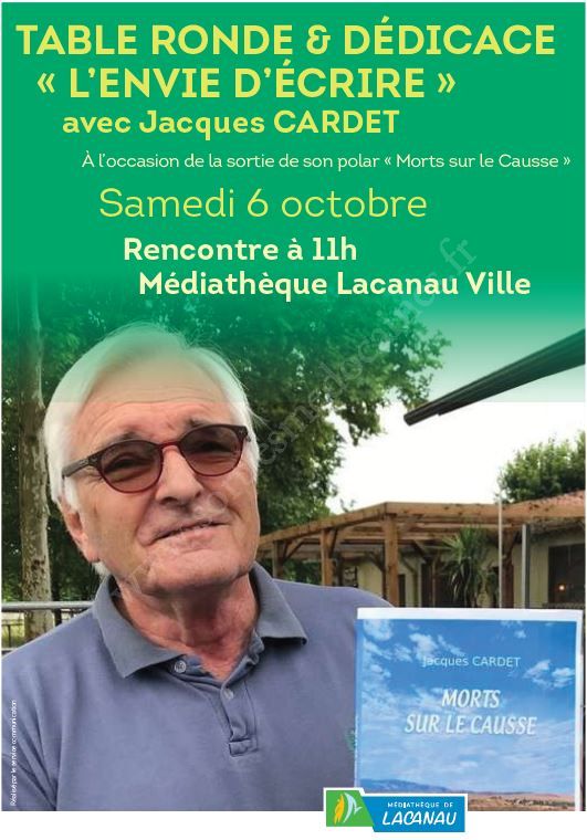 Samedi 6 octobre à la médiathèque de Lacanau Ville, table ronde sur "L'envie décrire" et vente-dédicace de Jacques Cardet.