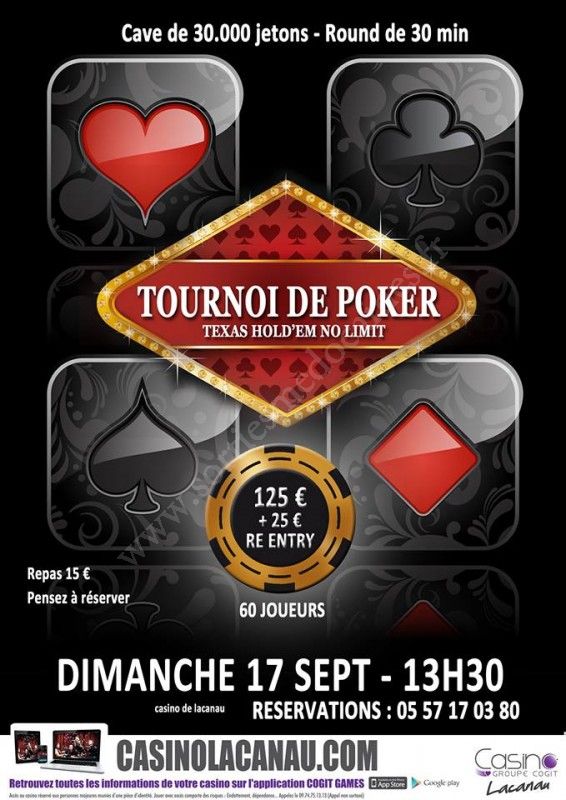 Dimanche 17 Septembre 2017 au Casino de Lacanau - Tournoi de Poker Texas Hold'em !