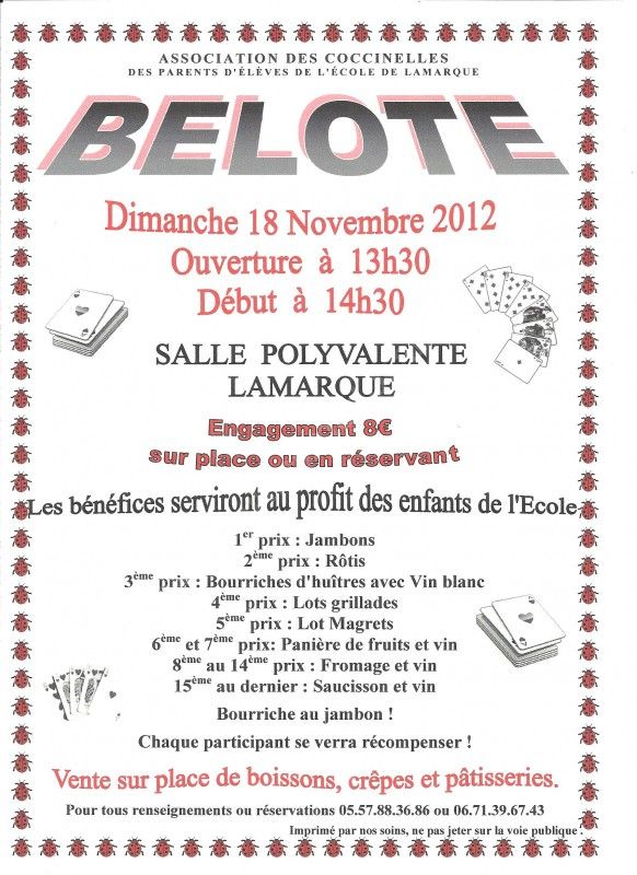 TOUS LES BENEFICES SERVIRONT AU PROFIT DES ENFANTS DE L'ECOLE DE LAMARQUE