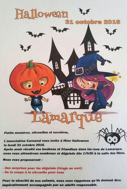 Après avoir récolté vos bonbons et friandises dans les rues de Lamarque, vous êtes attendus nombreux déguisés dès 17h30 à la salle des fêtes.