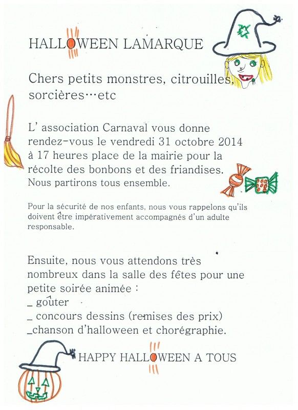 Chers petits monstres, citrouilles, sorcières, ... l'Association Carnaval vous donne rendez-vous pour la récolte des bonbons et des friandises.