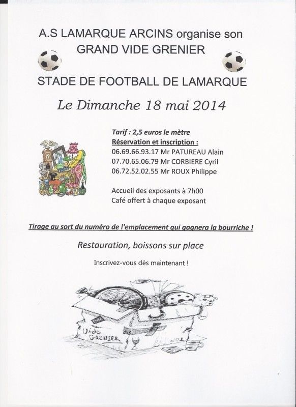 Accueil des exposants à 7h00. Café offert à chaque exposant.