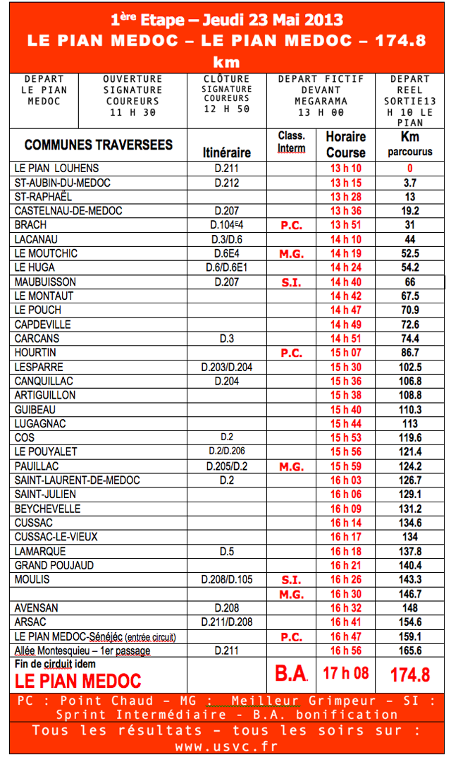 1ere étape et départ du Tour de Gironde Cycliste au Pian.