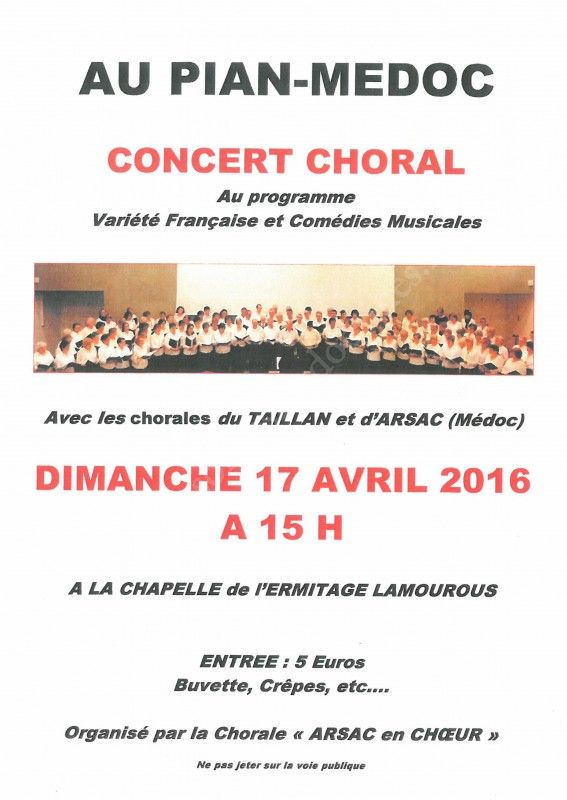 Venez écouter les chorales Arsac en Choeur et Expressions en Liberté pour un concert de variétés françaises et comédies musicales.