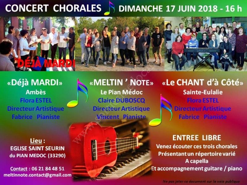 Concert commun avec le Groupe Vocal "Déjà Mardi" d'Ambès, le Groupe Vocal "Le Chant d'à Coté" de Saint Eulalie et le Groupe Vocal "Meltin'Note" du Pian Médoc
