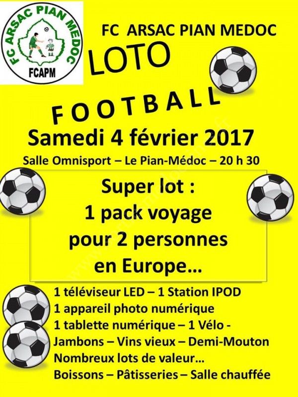 Loto annuel du Football Club Arsac-Le Pian Médoc.
