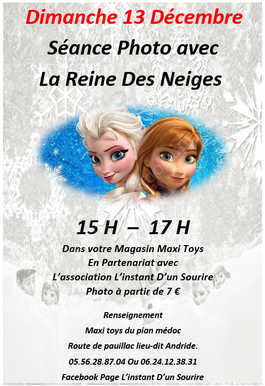 Séance photo avec la Reine des Neiges de 15h à 17h