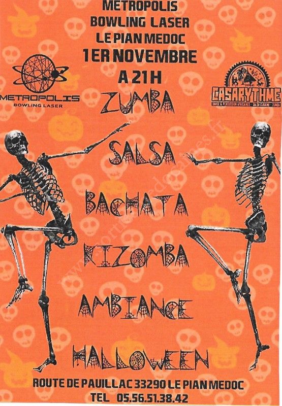 Soirée dansante : ambiance Halloween aux rythmes de la zumba,de la salsa,de la bachata,kizomba et toutes les autres dances proposées par l'association casarythme au Métropolis du Pian-médoc .