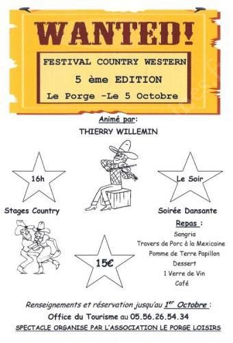 L'association Le Porge Loisirs vous invite à la 5ème édition du Festival Country Western qui sera animé par Thierry Willemin