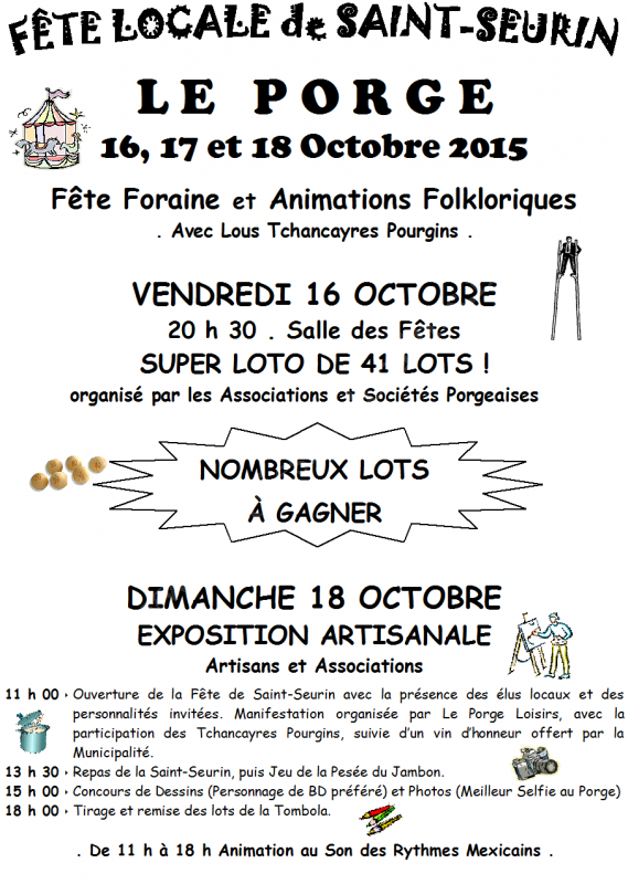 - Samedi 17 et dimanche 18 octobre 2015 : Fête foraine