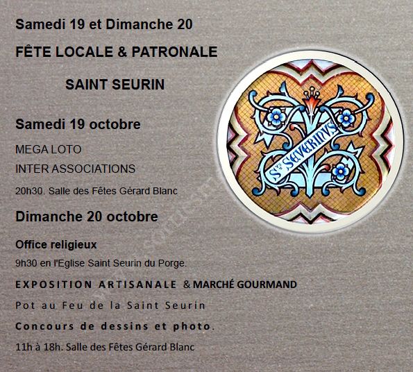 - 13h30 : Repas de Saint-Seurin - Sur inscription à l'Office de Tourisme Le Porge jusqu'au 15 octobre 2013