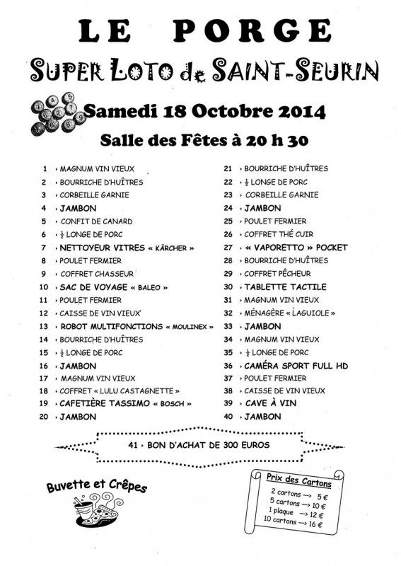 Loto organisé dans le cadre de la Fête Locale et Patronale Saint-Seurin.