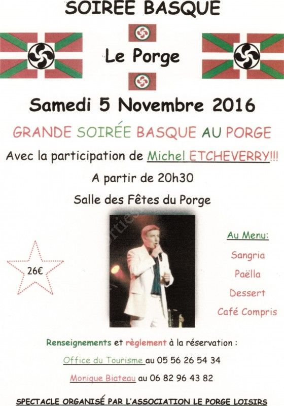 Soirée Basque animée par Michel Etcheverry et organisée par Le Porge Loisirs.
