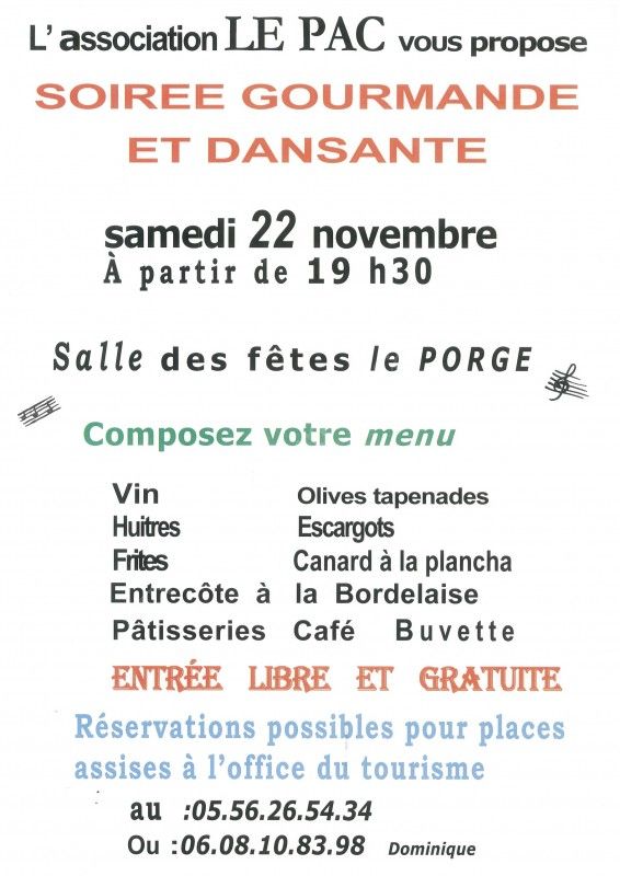 Soirée organisée par Le PAC Le Porge et animée par "Zoé et Compagnie"
