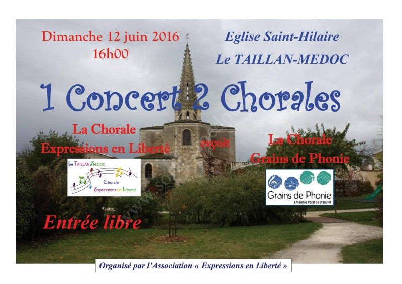 La chorale "Expressions en Liberté" du Taillan-Médoc reçoit la chorale "Grains de Phonie" de Breuillet en Charente Maritime.
