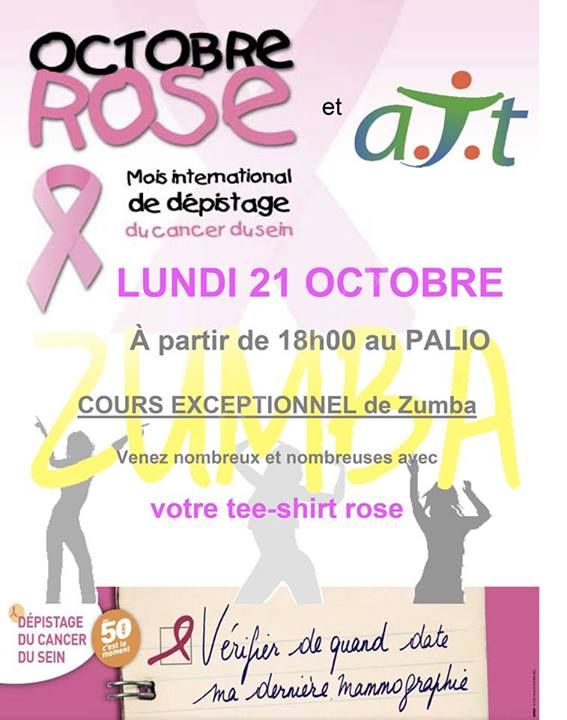 L’AJT Gym Volontaire vous donne rendez-vous pour un cours de Zumba exceptionnel au profit de l’association « Cancer du sein parlons-en ».
