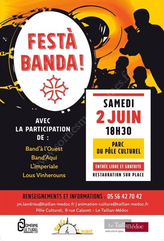 Les bandas seront à l'honneur au Taillan-Médoc. Véritables institutions du grand sud-ouest, ces groupes accompagnent traditionnellement les fêtes de villages, les courses landaises et autres férias. Cette soirée est également dans la continuité des rendez-vous qui vous sont proposés régulièrement autour des cultures occitanes : conférences, rencontres, ateliers de cuisine, concerts, …