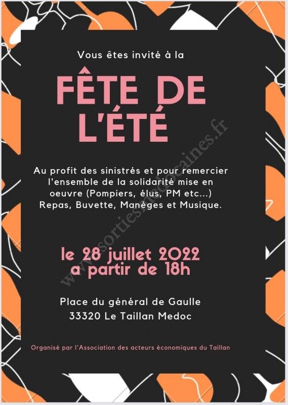 L'Association des Acteurs Economiques du Taillan-Médoc vous invite à la Fête de l'été jeudi 28 juillet à partir de 18h00.