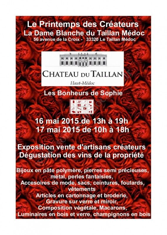 Exposition artisanale au Château La Dame Blanche du Taillan Médoc avec dégustatiion gratuite des vins de la propriété.