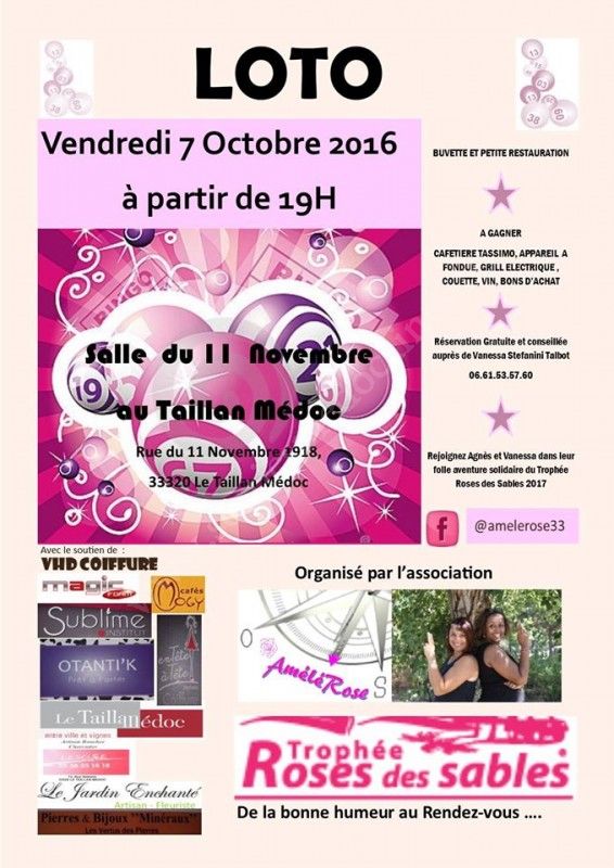 Venez nombreux au Loto de l'association Amélérose, au profit de leur beau projet : participer à la prochaine édition du trophée Rose des Sables.