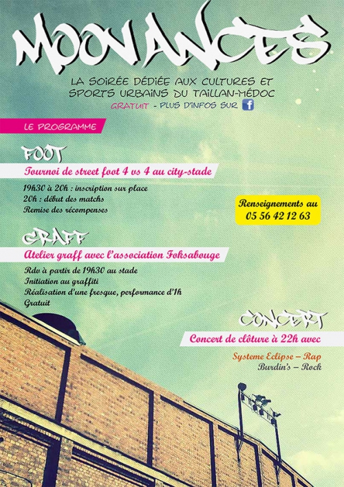 LA SOIREE DEDIEE AUX CULTURES ET SPORTS URBAINS DU TAILLAN-MEDOC - Tournoi Streetfoot au city-stade, Atelier Graff, Concert...