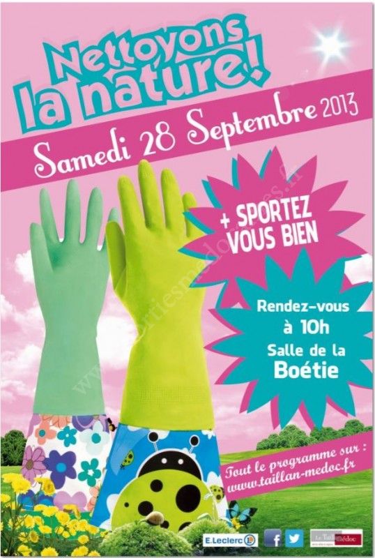Samedi 28 septembre, le Taillan-Médoc se mobilise pour le nettoyage des espaces naturels de la commune. Venez nombreux participer aux opérations "Nettoyons la Nature" & "Sportez vous bien"; ce sera l'occasion de sensibiliser les plus jeunes aux questions de protection de l'environnement lors d'une course d'orientation conviviale en famille. La journée sera clôturée par la remise des prix du concours des jardins fleuris.